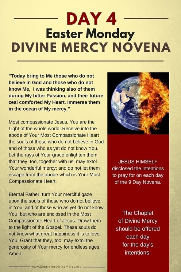 A powerful nine-day devotion revealed to Saint Faustina by Jesus. Each day invites us to intercede for specific souls, drawing deeply from the fountain of Christ’s mercy. This novena begins on Good Friday and prepares hearts for Divine Mercy Sunday. However, this Novena can also be prayed at other times.